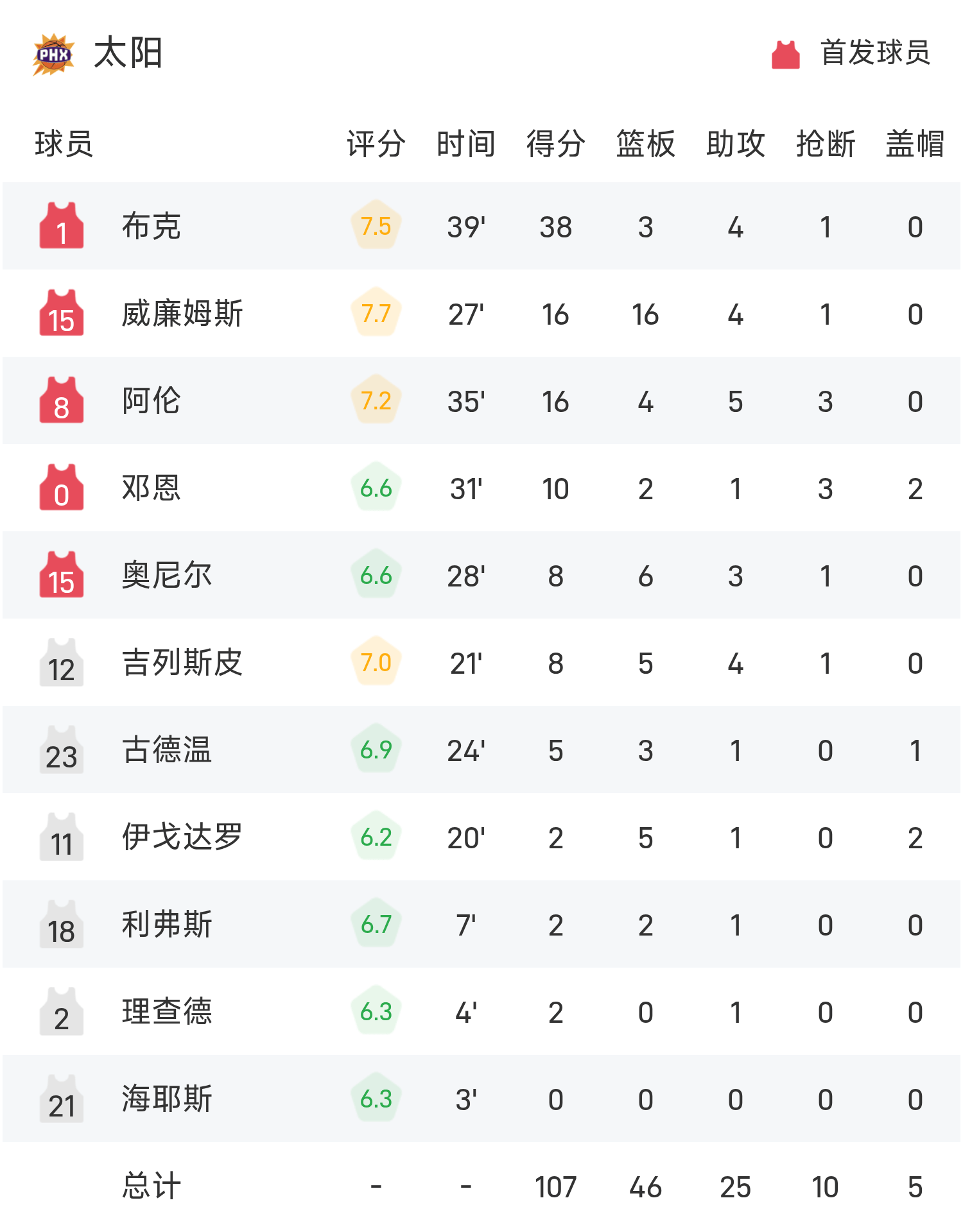 NBA战报:库里28分,布克空砍38分,勇士118-107击败太阳
