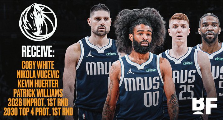 而达拉斯独行侠则将得到急需的选秀权,以及武切维奇、赫尔特和科比·怀特——这三位球员均处于合同到期季。