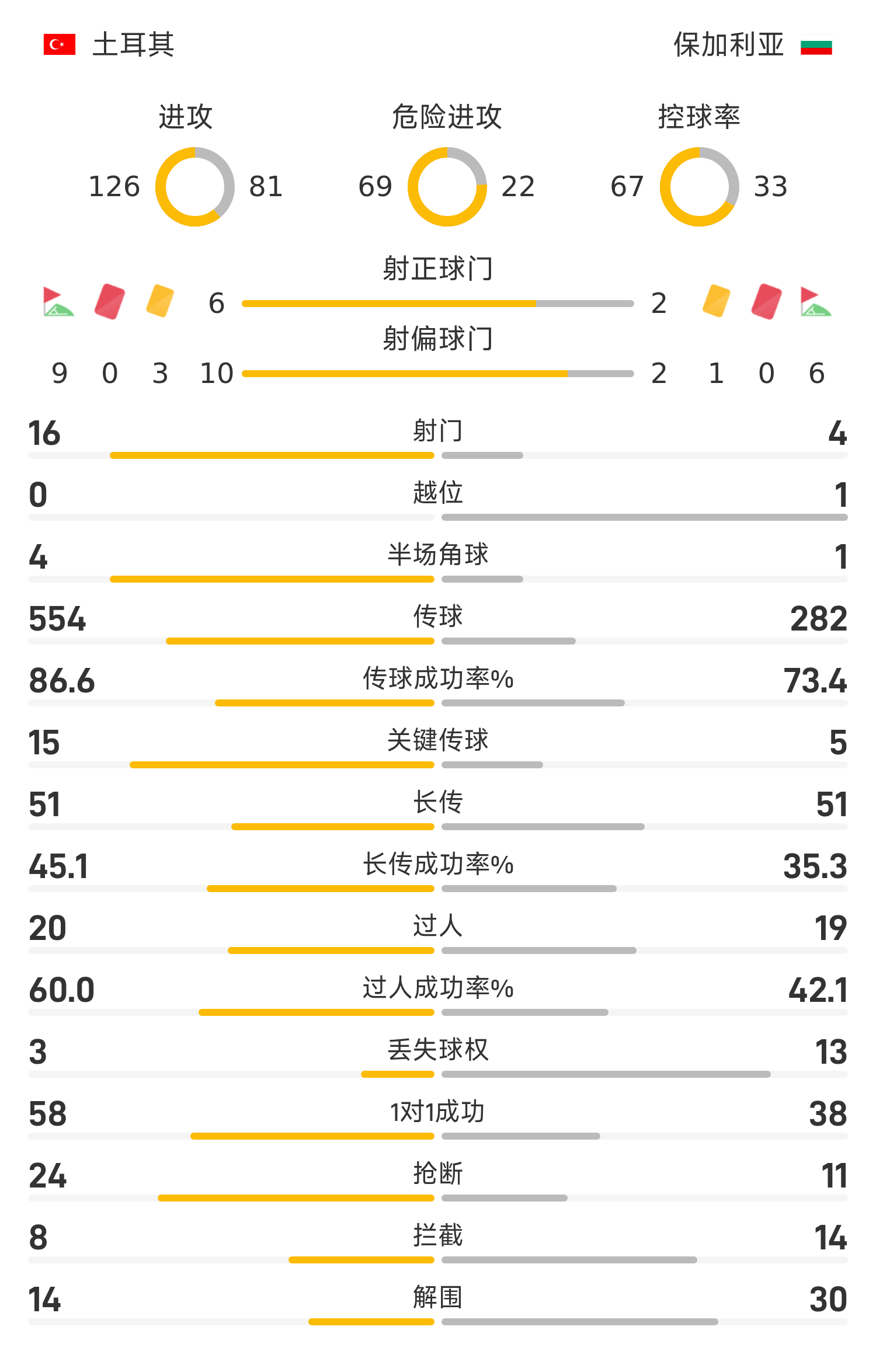 土耳其首发阵容:23-卡基尔、14-巴达克、3-德米拉尔(46’15-阿卡丁)、20-卡迪奥格鲁(61’18-米尔杜尔)、2-切利克(61’22-艾汗)、10-恰尔汗奥卢、19-艾丁、16-尤克塞克、8-居莱尔(88’17-萨里)、11-伊尔迪兹、7-阿克图科格鲁