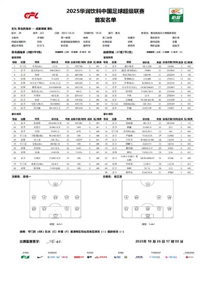 6686体育官网10月26日讯 中超联赛事第28轮,青岛西海岸主队场迎战成都蓉城,赛前双方首发出炉。
