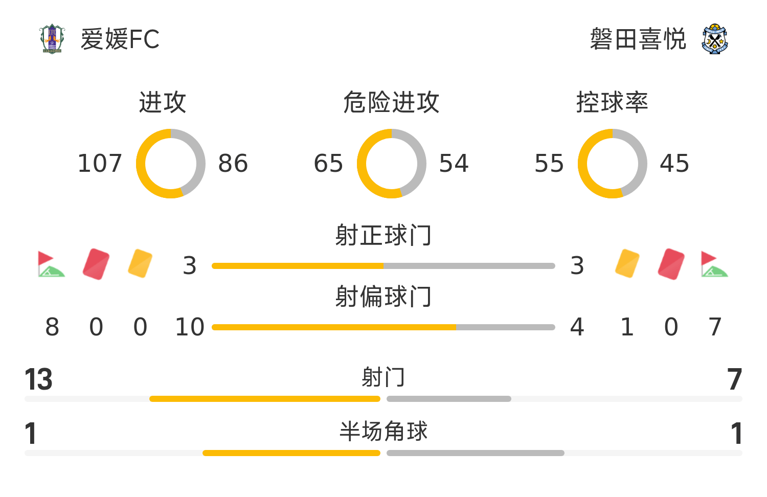 爱媛FC首发阵容:36-辻周吾、37-石尾崚雅、19-黒石贵哉、25-吉田温纪、44-森山公弥、7-曾根田穣(70’10-佐藤亮)、24-甲田英将(70’40-杉森考起)、28-前田椋介、8-深泽佑太(81’15-鹤野怜树)、13-堀米勇辉(87’48-行友翔哉)、32-藤本佳希(81’17-村上悠绯)