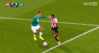 随后在下半场第60分钟,范戴克在三秒区边缘守卫过程中脚尖踢到瓦塔拉脚底,致后者倒地。随后主裁判判在听取视频裁判意见后直接裁决十二码,致利物浦以1-3跟跑位。