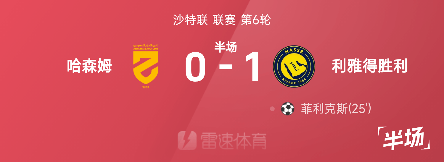 沙特联半场:菲利克斯破门,利雅得胜出局暂1-0哈森姆