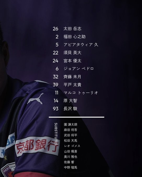 6686体育官网10月25日讯 日职第35轮,京都不死鸟vs鹿岛鹿角。赛前,双方公布首发名单。
