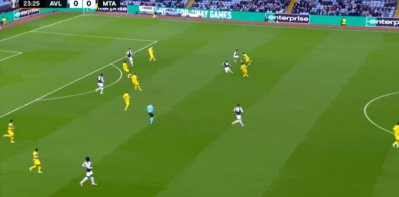 阿斯顿维拉首发阵容:23-马丁内斯、3-林德洛夫、4-孔萨、14-托雷斯、22-马特森、19-桑乔、24-奥纳纳、29-盖桑、27-罗杰斯、26-博加德、17-马伦