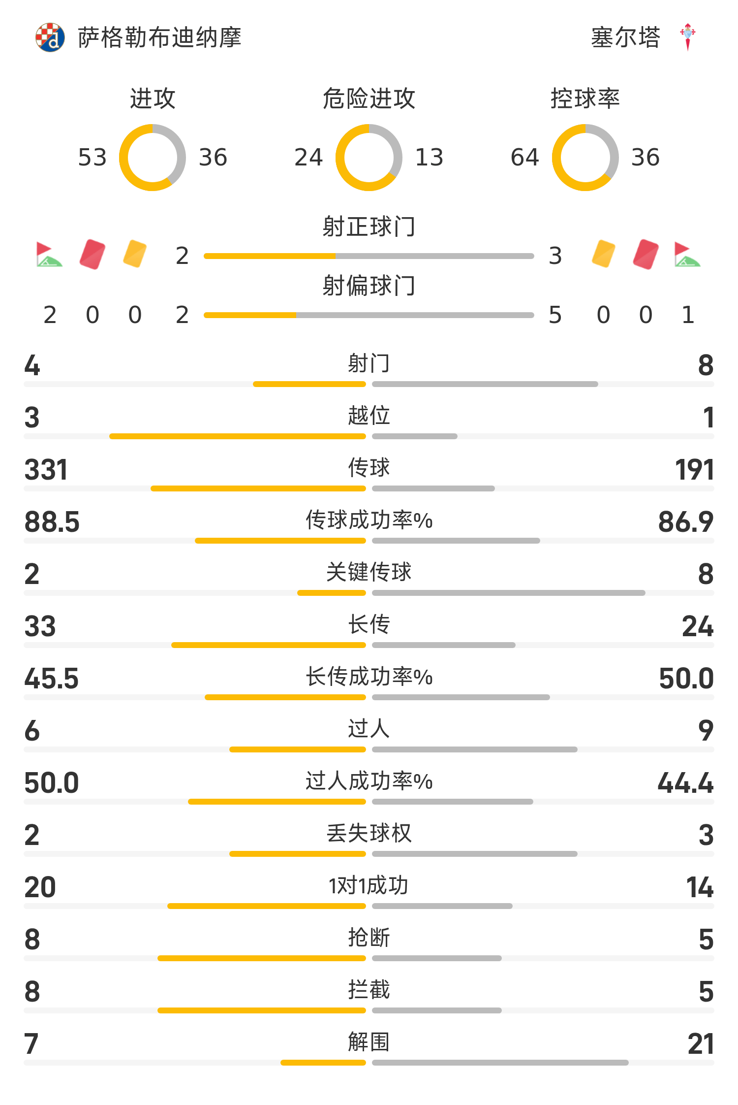 塞尔塔首发阵容:1-维拉尔、2-斯塔费尔特、21-里斯蒂奇、24-多明格兹、32-加利亚诺、10-阿斯帕斯、8-贝尔特兰、16-罗曼、15-萨拉戈萨、18-杜兰、39-阿卜杜拉乌伊
