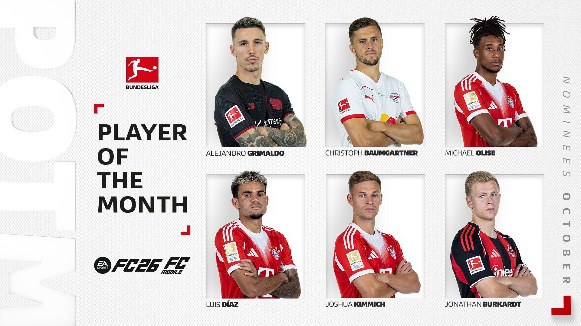 6686体育官网11月7日讯 德甲官方公布了十月份联赛事最佳球员,法兰克福前锋伯克特力压拜仁前锋迪亚斯和药厂队长格里马尔多当选。