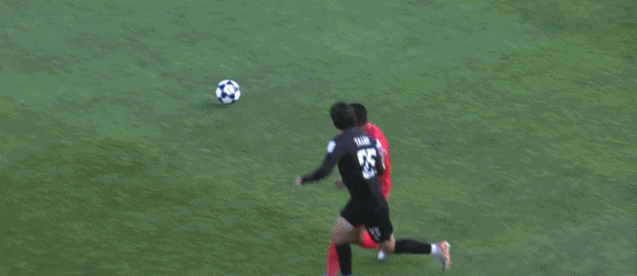 12’河内将自由球主罚到三秒区内,莱格利头槌被守门员直接得到