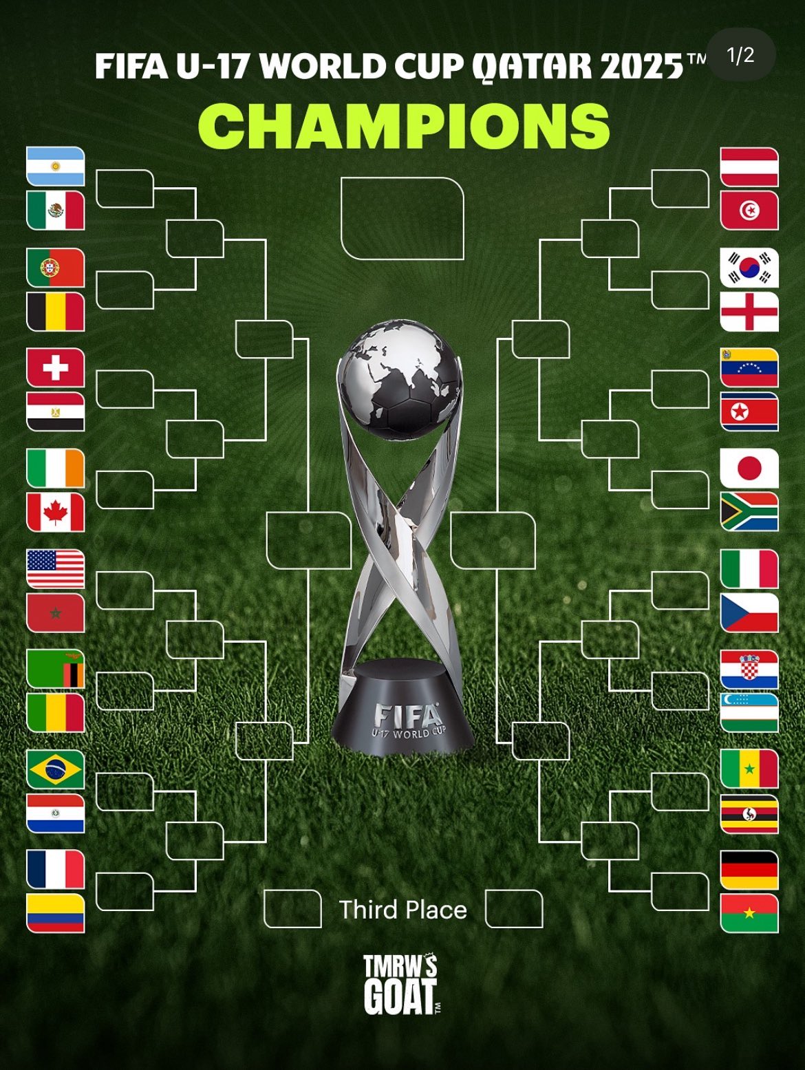 2025年U17男足世杯赛在卡塔尔举行,共48队参加正赛。分组赛分为12组,每组前2名和8个成绩最好的小组第三晋级32强的淘汰战。